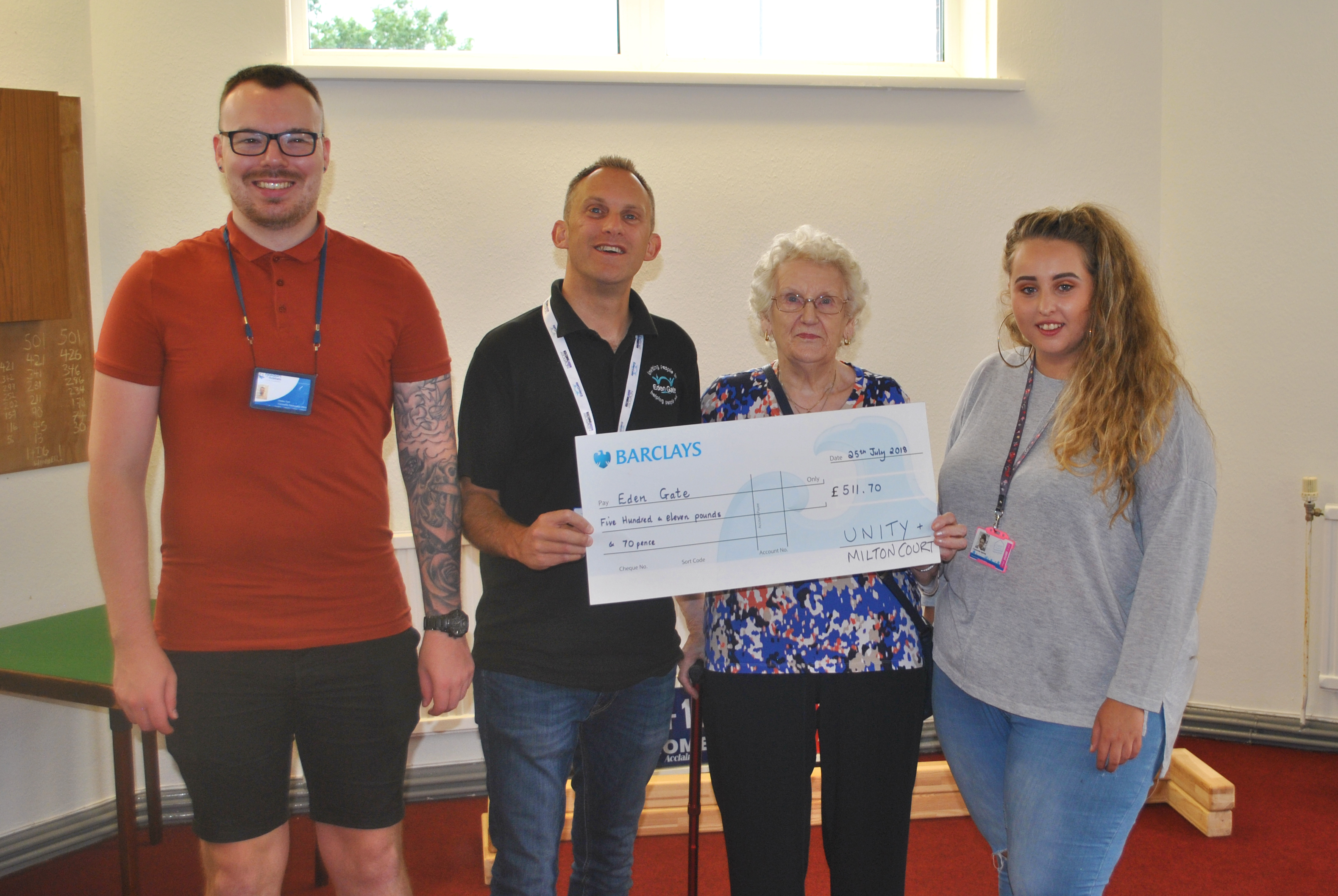 Today youth forum UNITY and Milton Court residents presented Eden Gate homelessness charity with a cheque for £511.70, following a successful fundraising event last month.